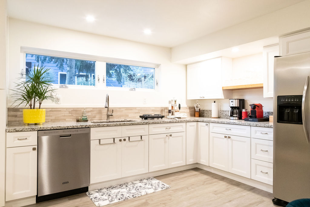 The swanky décor, well-stocked kitchenette, and spacious living room and dining area highlight this space. A large covered deck perfect for sipping a glass of wine overlooks the yard and Willamette Valley. This flat will accommodate 3, maybe 4 cozy. Independent keyless entry and convenient parking.